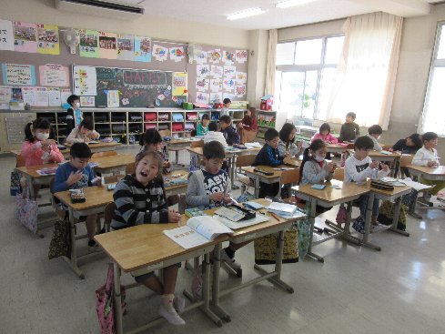 1時間目は算数の授業でした。計算カードを使って九九の練習を繰り返し行いました。
