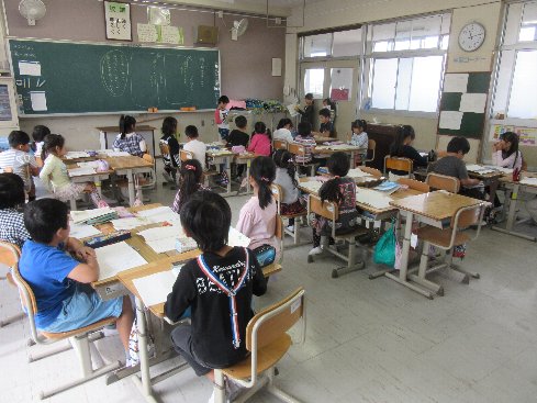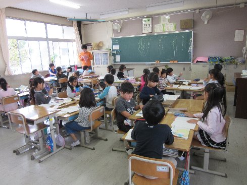 5月30日(水)3時間目は算数の授業でした。章末問題に取り組みました。早くできた子が「小さい先生」になって、理解がまだの子のお手伝いをしていました。