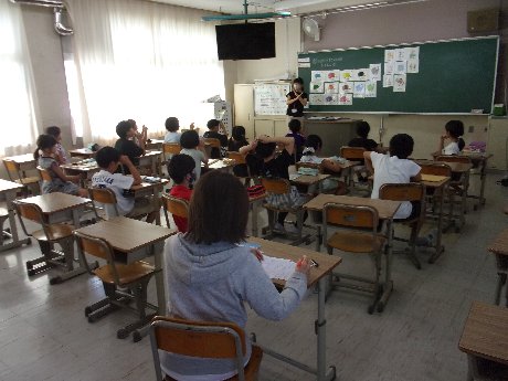 2時間目は外国語活動でした。ともだちのすきなものをたずねる言い方と答え方を練習しました。