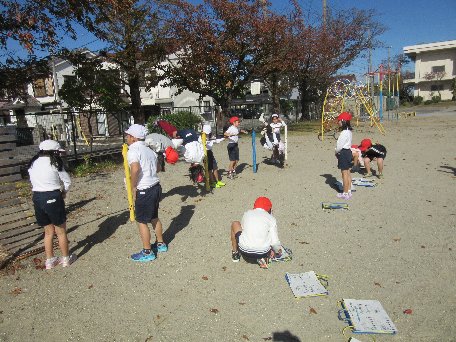 4月23日(月)3・4時間目は体力テストを行いました。はじめに運動場の種目を行って、そのあと、体育館の種目を行いました。
