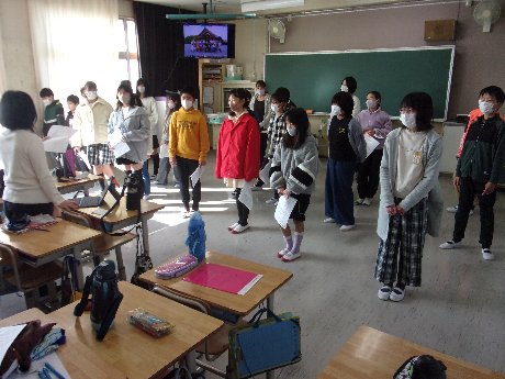 1時間目は学活でした。学習発表会に向けて教室で練習をしました。