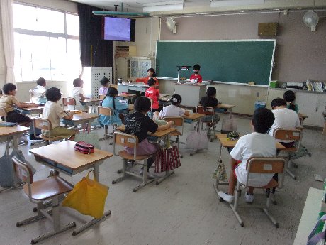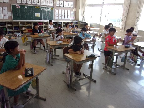 1時間面は学活でした。夏休みの思い出をかいた絵日記の発表会をしました。