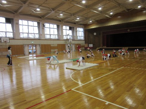 1時間目は体育の授業でした。次回から取り組む、跳び箱につながるマット運動に取り組みました。