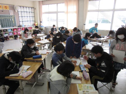 6月1日(金)担任の先生が陸上競技会の役員で出張のため、4年生は1日中テストでした。よく頑張りました。