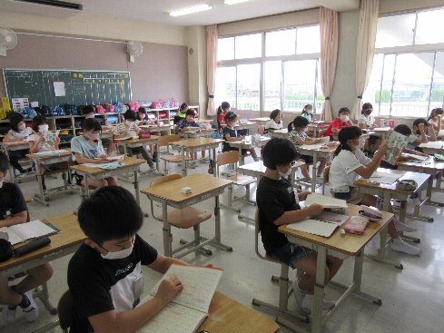 1時間目は国語の授業でした。漢字の組み立ての勉強をしました。