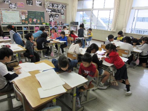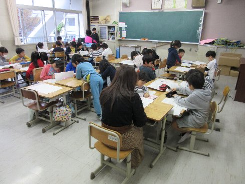 5月30日(水)3時間目は算数の授業でした。章末問題に取り組みました。早くできた子が「小さい先生」になって、理解がまだの子のお手伝いをしていました。