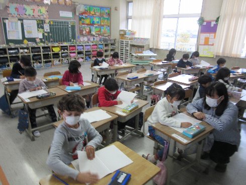 1時間目は国語の授業でした。「おてつだいをして」の作文の清書をしました。