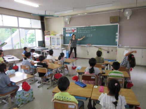 2時間目は算数の授業でした。2つの数の大小をどうやって説明したら良いか考えました。