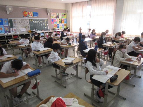 2時間目は算数の授業でした。章末の「もっと練習」で、練習問題に取り組みました。