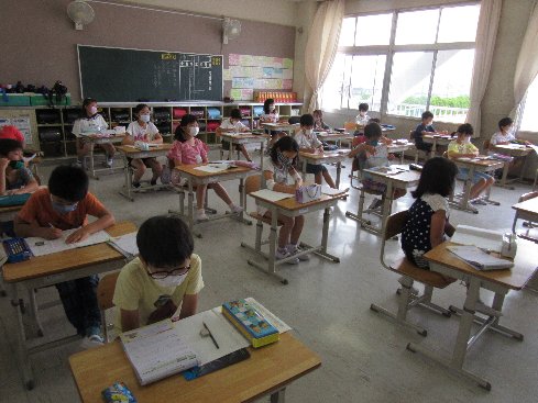 1時間目は算数の授業でした。計算ドリルで練習問題に取り組みました。