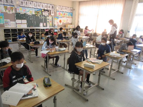 1時間目は理科の授業でした。閉じ込めた水に力をかけたときの体積の変化について考えました。