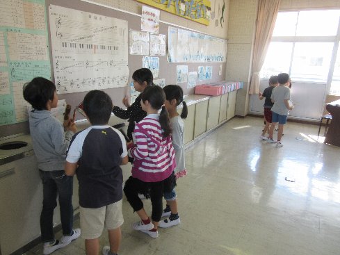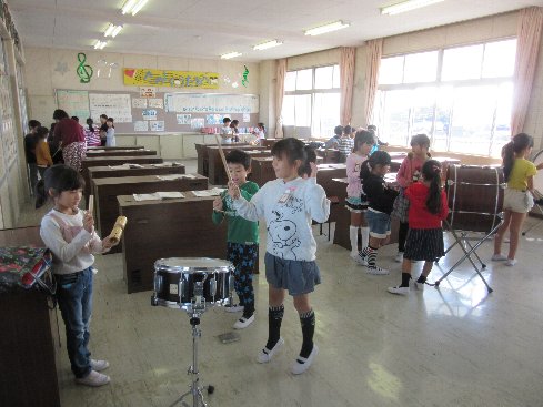 2時間目は音楽の授業でした。「楽器の音の組み合わせを楽しみましょう」ということで、いろいろな楽器の合奏をして楽しました。