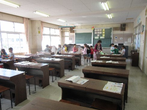 5月30日(水)3時間目は算数の授業でした。章末問題に取り組みました。早くできた子が「小さい先生」になって、理解がまだの子のお手伝いをしていました。