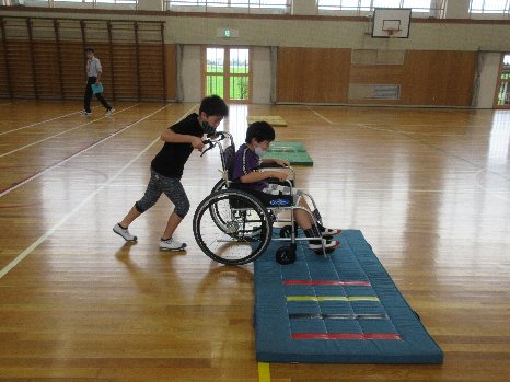 4年生は車椅子体験を行いました。とても上手に車椅子を動かすことができていました。