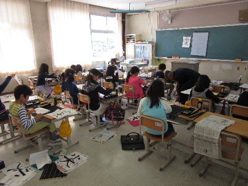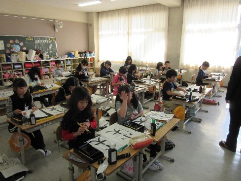 4月16日(月)2時間目は書写の授業でした。初めての毛筆です。硯の使い方から始まって筆のおろし方、片付けのしかたなど、することすべてが初めての経験です。しっかり覚えてスムーズにできるようにしましょう。