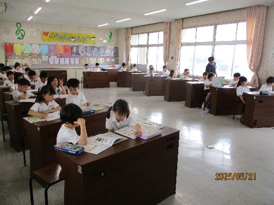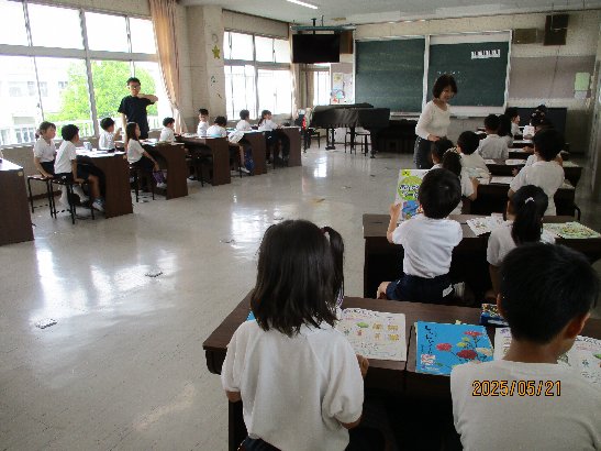 2時間目は音楽の授業でした。「朝のリズム」を手足ひざでリズムをとる練習をしました。