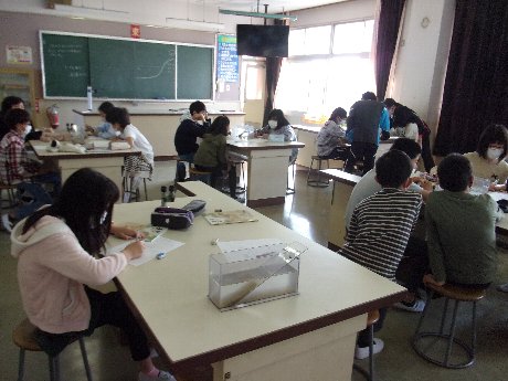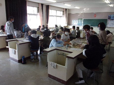 2時間目は理科の授業でした。流れる水の働きで、地層がどのように作られるか実験を通して考えました。