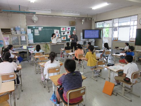 1・2時間目は英語の授業でした。What is this?の文を使って会話をしました。