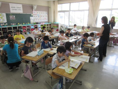 3時間目は算数の授業でした。「正しく長さをはかろう」ということで、実際にものさしを使ってはかりました。