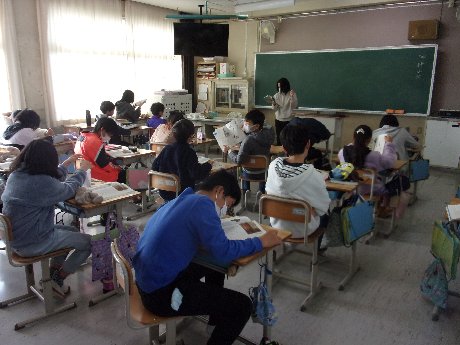 2時間目は国語の授業でした。「柿山伏」の学習が始まりました。