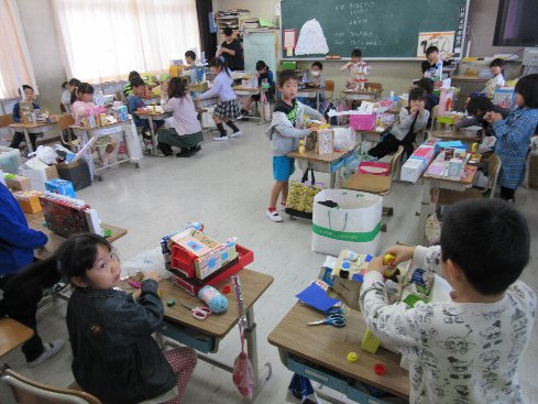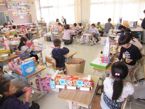 3時間目は図画工作の授業でした。立体作品の仕上げていました。