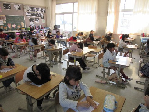 4時間目は国語の授業でした。漢字の小テストを行いました。
