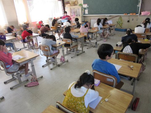 5月30日(水)3時間目は算数の授業でした。章末問題に取り組みました。早くできた子が「小さい先生」になって、理解がまだの子のお手伝いをしていました。