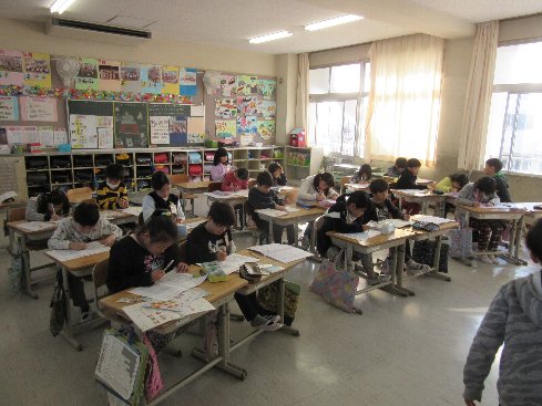 1時間目は書写の授業でした。漢字の「字の形」に注意して、書く字について練習しました。