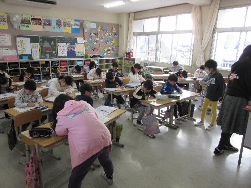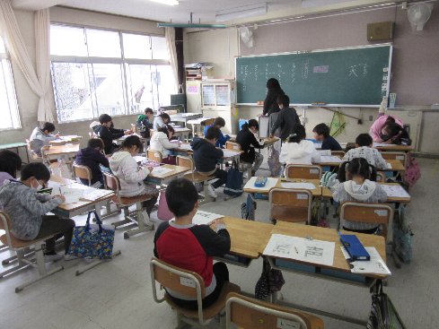 1時間目は書写の授業でした。字の中心に気をつけて書く漢字の書き方を練習しました。