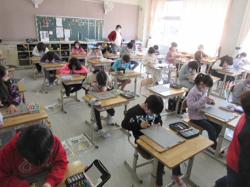 3時間目は図画工作の授業でした。多色版画に取り組みました。
