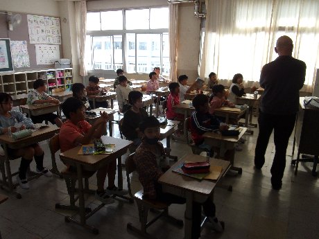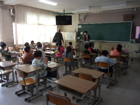 2時間目は外国語活動でした。大文字の読み方に注意して、元気よく読みました。