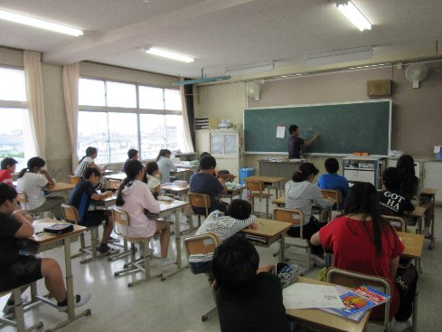 1時間目は算数の授業でした。その前に、朝の会の続きで、新聞記事の一面で報道されていたハンセン病裁判について考えました。