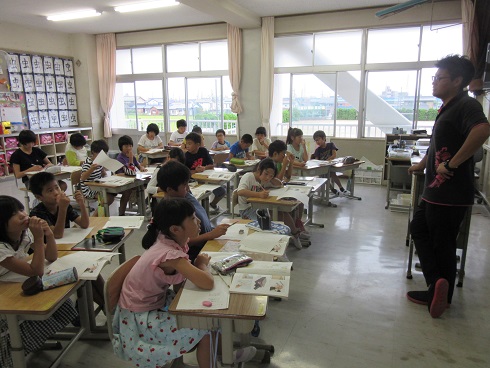 4月27日(金)2時間目は書写の授業でした。始筆、終筆に気をつけて書くように指導を受けていました。
