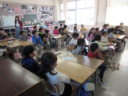4月27日(金)1時間目は英語の授業でした。英語教室でALTのキース先生と楽しくアルファベットの勉強をしました。