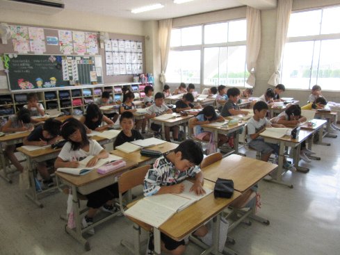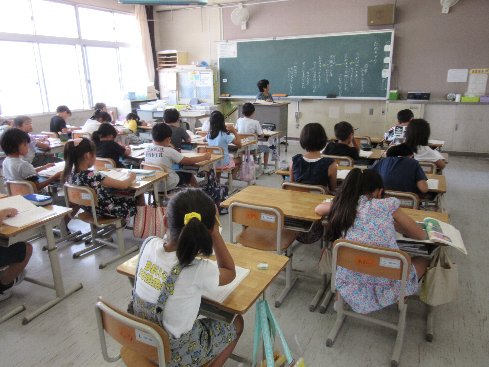 1時間目は国語の授業でした。「たのきゅう」のお話を聞いて考えました。