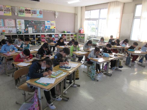 2時間目は国語の授業でした。始めに小テストを行いました。