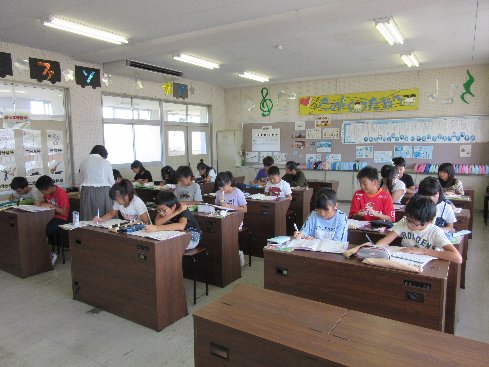 1時間目は音楽の授業でした。「さとうきびばたけ」をリコーダーで練習しました。