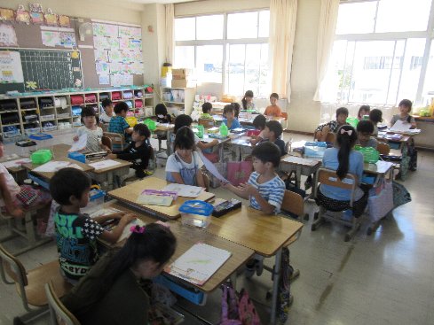 6月5日(火)4時間目は国語の授業でした。ひらがなワークを進めて、できた子から順番に先生に見てもらいました。