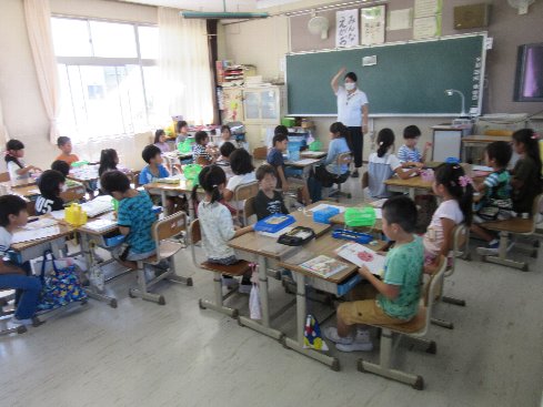 7月19日(木)1時間目は夏休みの宿題を配布しました。一つ一つ、やり方の説明を受けて、確認しながら配布しました。