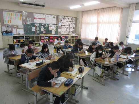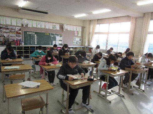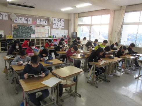業前は、読書活動でした。静かに読書に取り組みました。