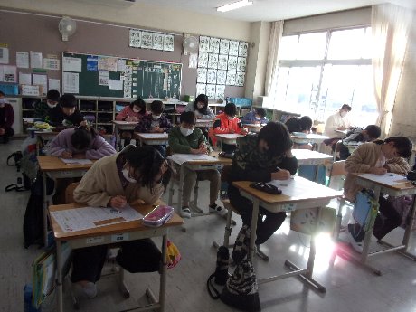 1時間目は国語の授業でした。テストをしました。