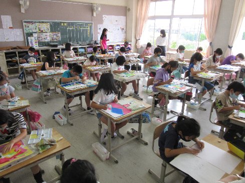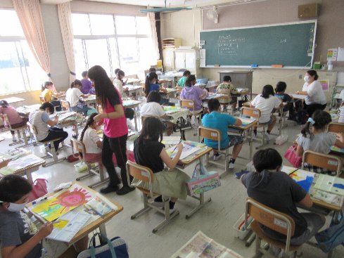 3時間目は図画工作の授業でした。まぼろしの花の彩色をしました。