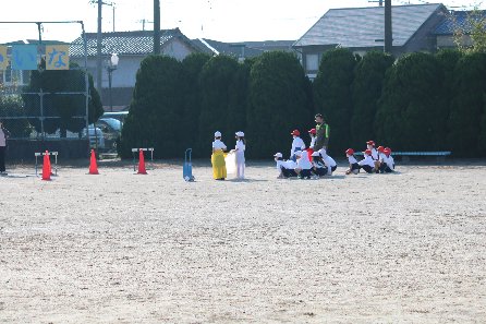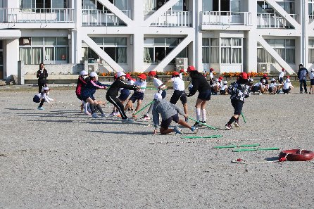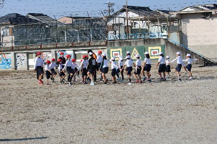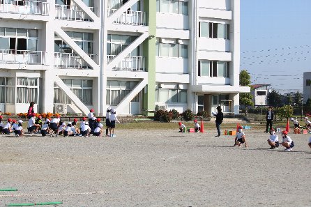 天候に恵まれ、とても順調に練習が進んでいます。今日は、5・6班がトラック内を使って練習をしました。