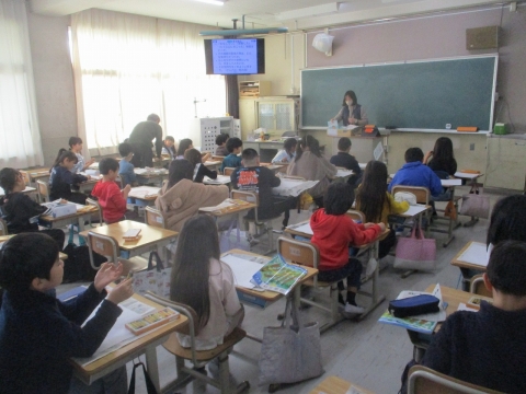 読書感想画に取り組んでいました。読書を通して思い描いた場面を、絵で表現していました。