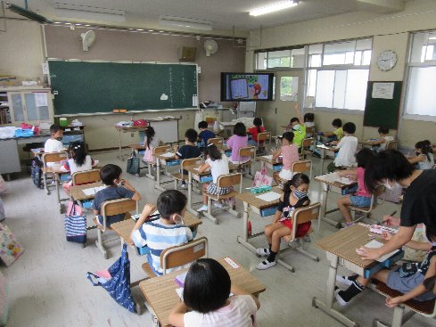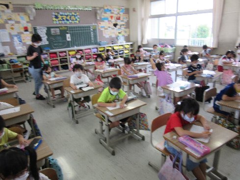 1時間目は道徳の授業でした。「くまさんのおちゃかい」を題材にして考えました。