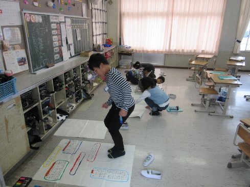 5月7日(月)4時間目は国語の授業でした。空書きをした後、漢字ドリルを使って、新出漢字を確認しながら学習を進めていきました。