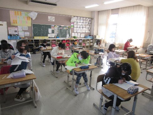 1時間目は算数の授業でした。章末の練習問題に取り組みました。