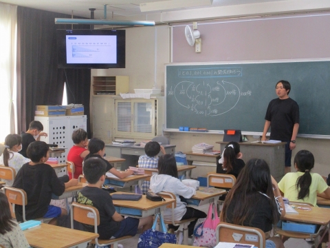 小数の学習に取り組んでいました。1と0.1や、1と0.01などの関係について学習していました。