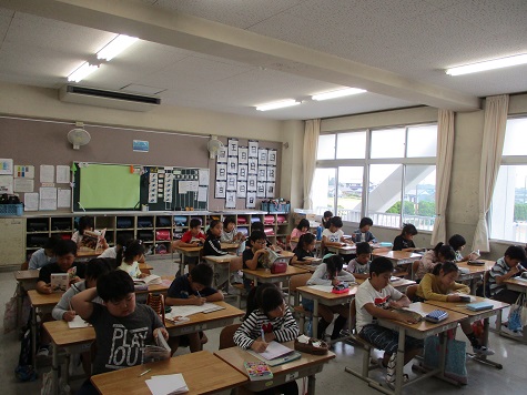 4時間目は総合学習の時間でした。インターネットを使って「あま市について調べたこと」を、新聞に一生懸命まとめています。文字の大きさや、写真の貼り方に気をつけながら書き進めてました。