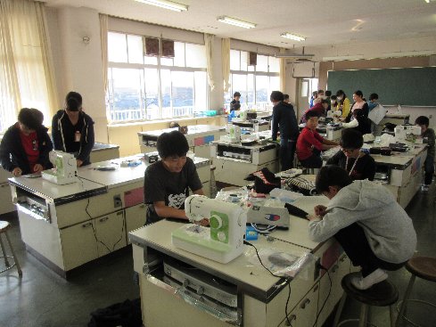 4時間目は家庭科の授業でした。引き続きナップサック作りに取り組みました。